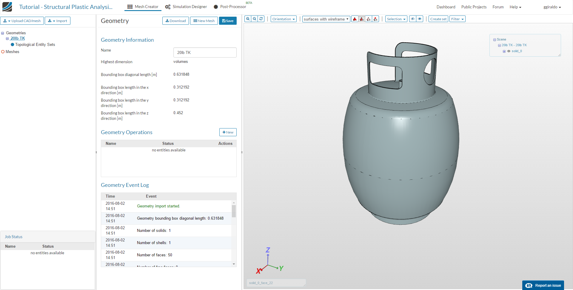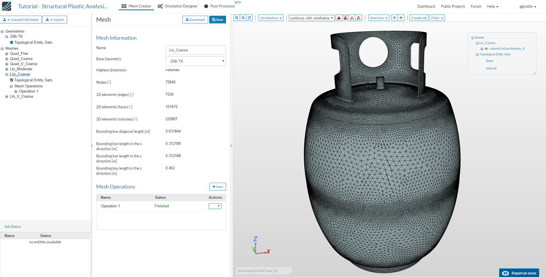 In the Mesh Creator tab, click on the geometry named 20lb - TK, then click on the New Mesh button