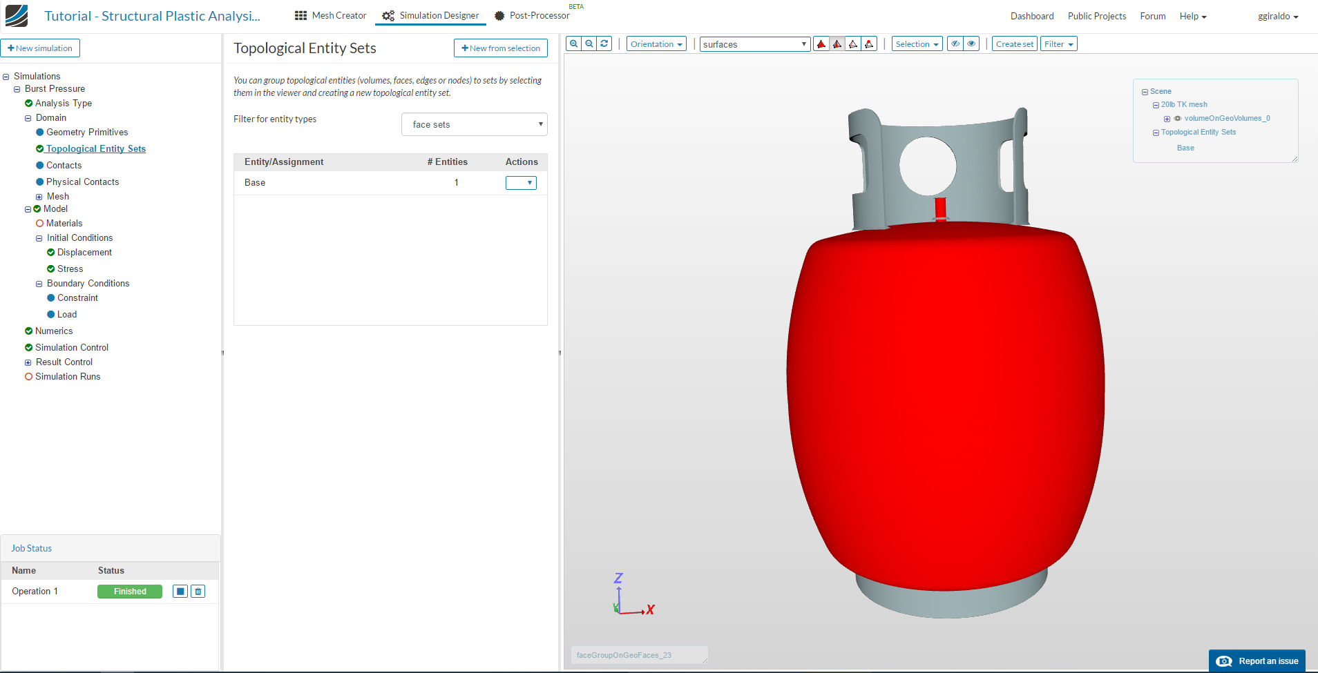 This tutorial is based on the project “Propane Tank Burst Analysis”, and covers the plasticity analysis. For further details and results discussion, refer to the original project.
