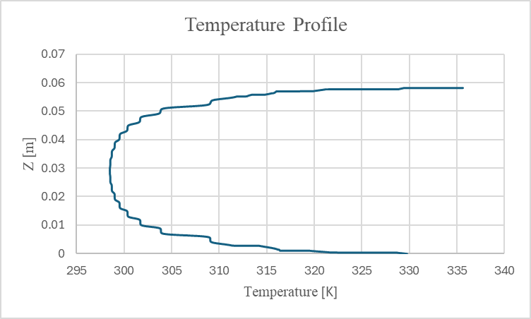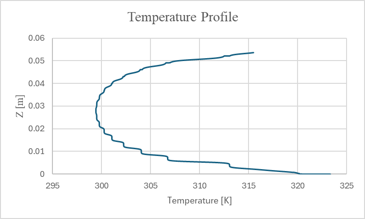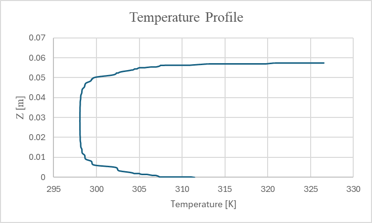 - Plot the Temperature profile at the start and end of the heated section and check if there is a temperature increase.