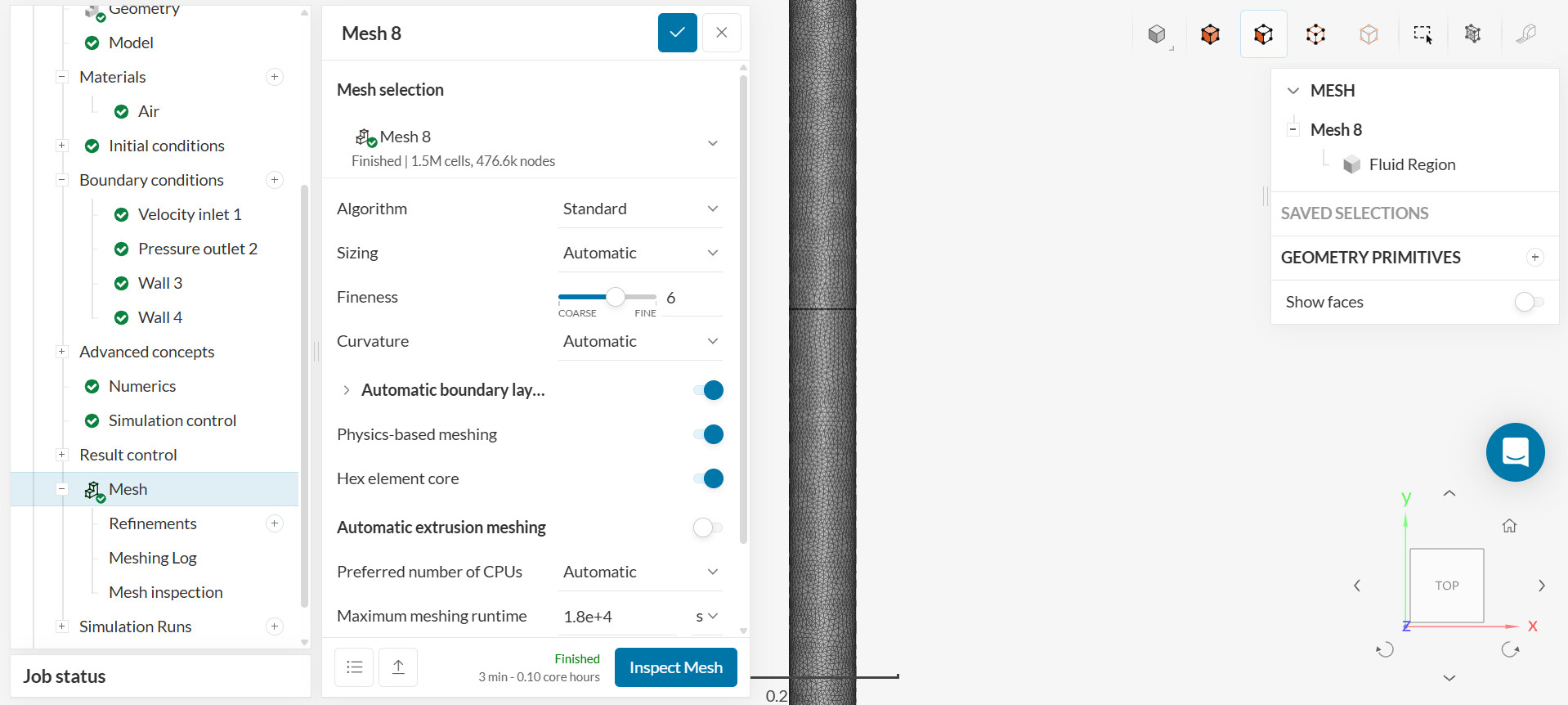 Click on ‘Meshing Log’ to quickly inspect the mesh.