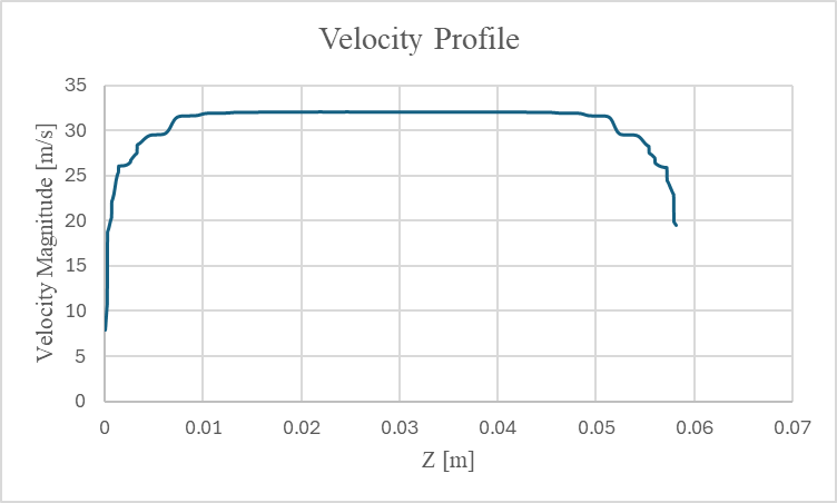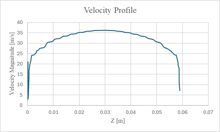 In comparison, the velocity profile at the start of the pipe at 0.351 m is shown below: