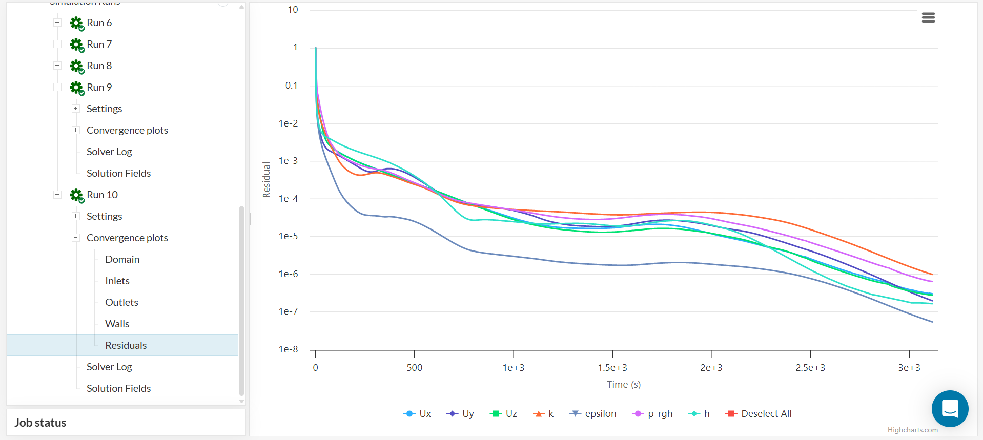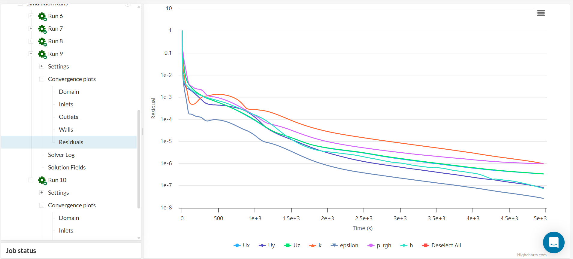 Click on ‘Run Simulation.’ The simulation should end in about 35 minutes and should spend around 9 core hours. The Run to refer to is Run 10.