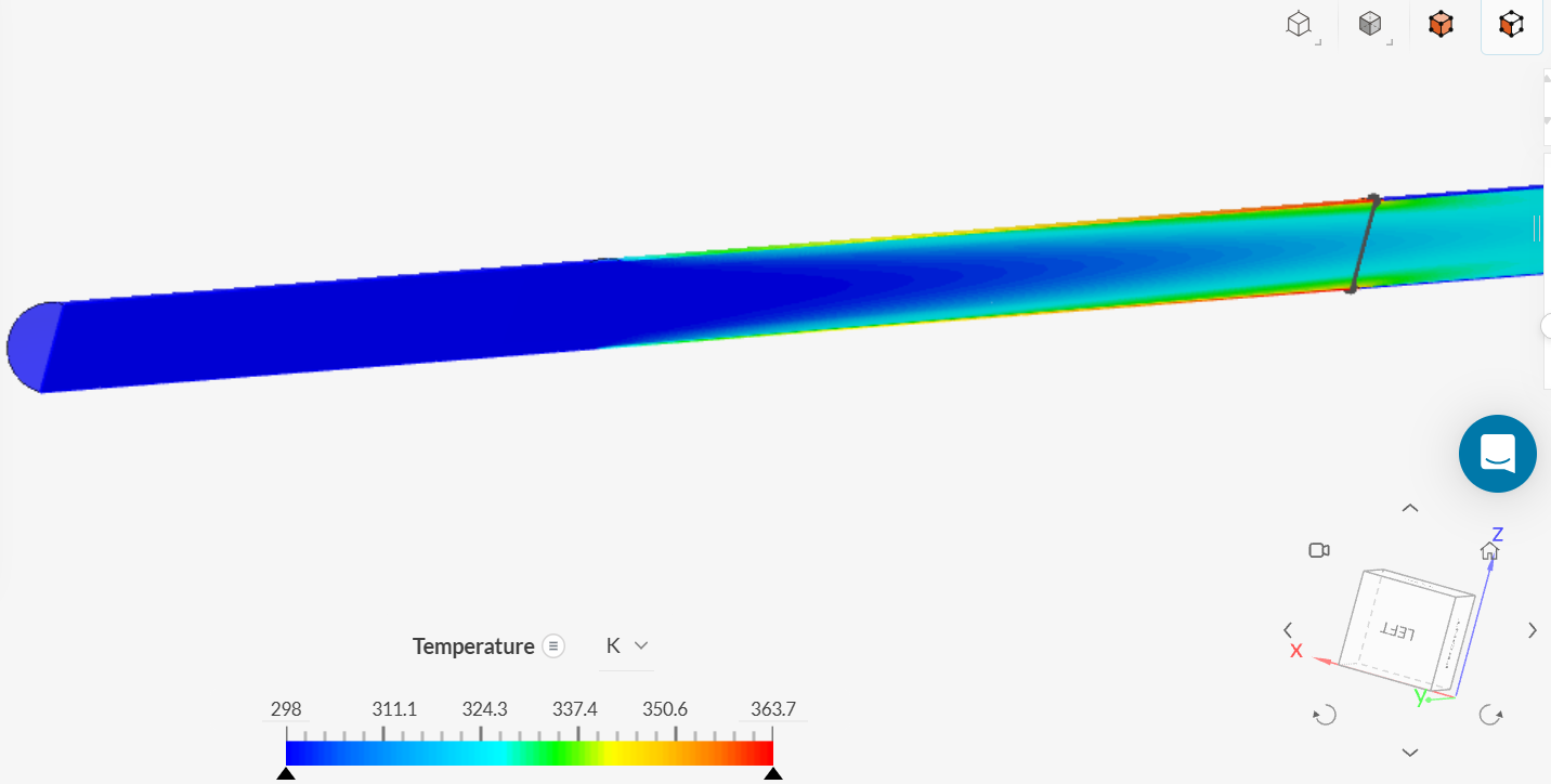 Find the region where the flow is thermally fully developed by using the ‘View - Inspect’ point on the temperature contour plot in the SimScale Post-Processor.