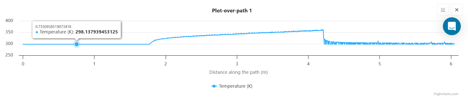 The Wall Temperature plot shows the change in temperature along the wall of the pipe. To generate this plot,