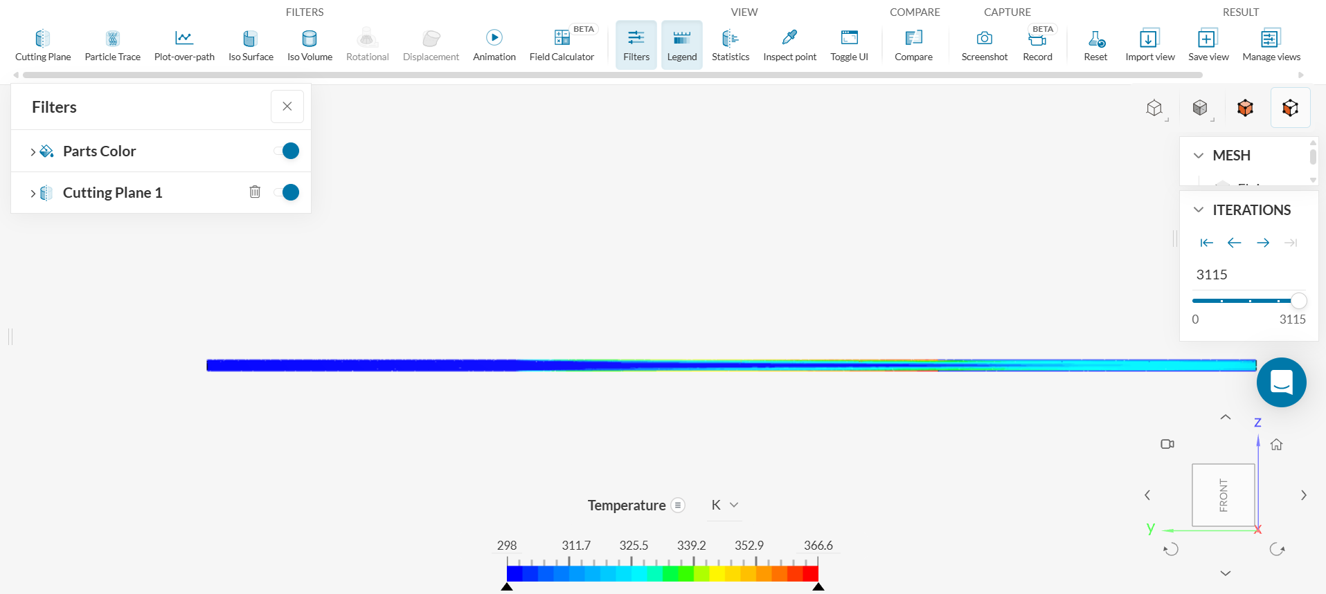 - To find T_w at the coordinate y = 3.5m, use the ‘Cutting Plane’ and find the maximum temperature value by using the ‘VIEW - Statistics’ feature.