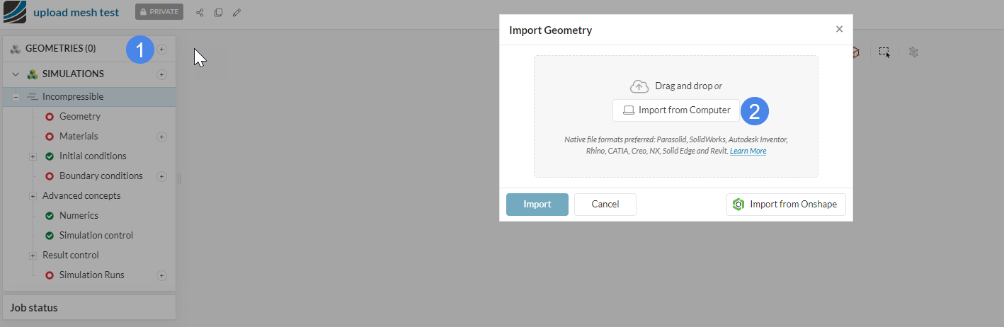 I need to run a 2D analysis of flow over a cylinder, I have a Openfoam Mesh and want to upload the same. But i dont find an option to do so. I only find geometry and simulation setup options. even after i expand those i don’t find the option to upload mesh,