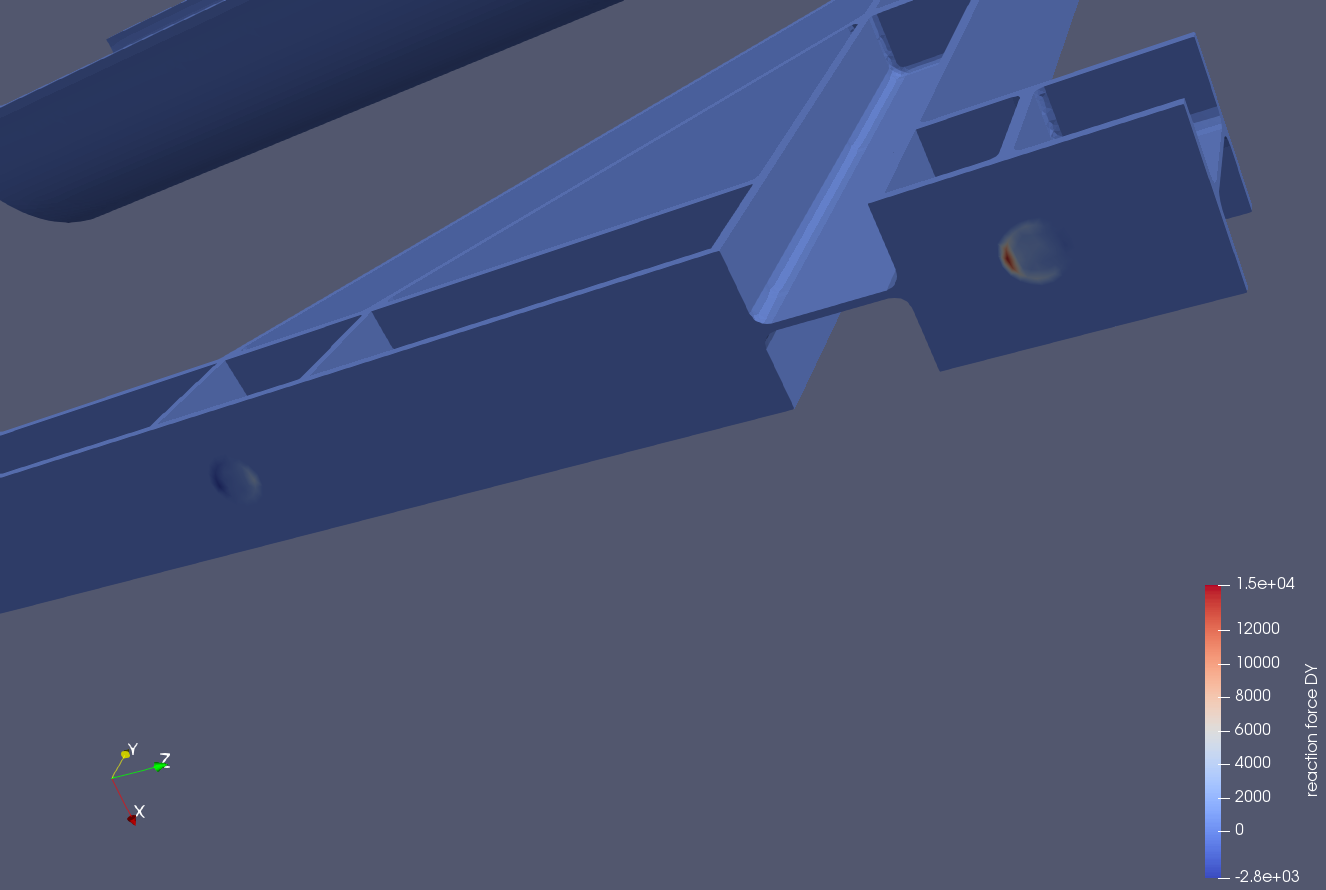 You could also use a filter in paraview to calculate the sum of reaction forces on specific surfaces, but it is a little cumbersome to select all the individual nodes as the “faces” are not pickable there, only individual mesh elements or nodes.