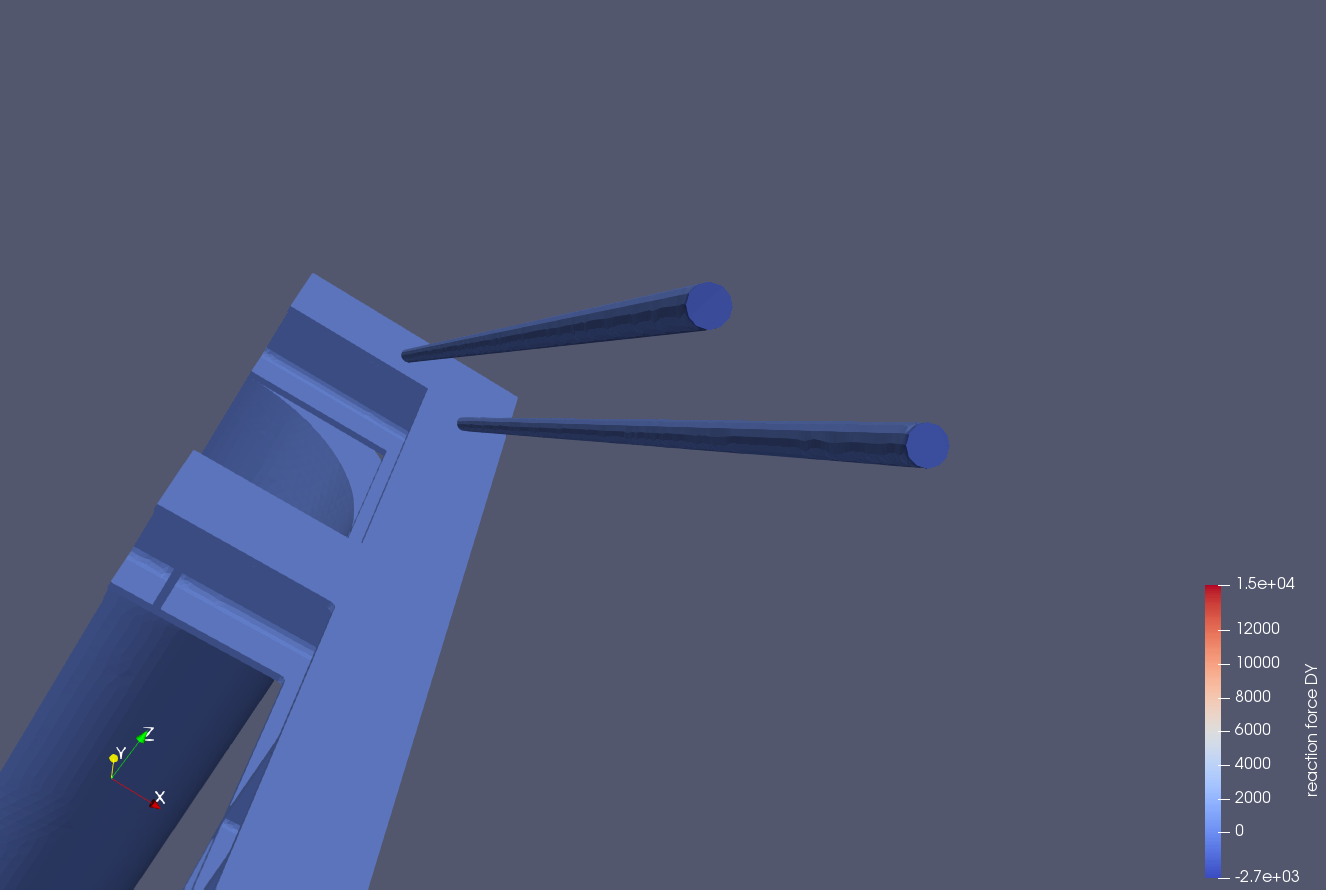Yes, I am defining the calculation of the reactions in Simsclae before the simulation. The picture from paraview is the “reaction force” representation.
