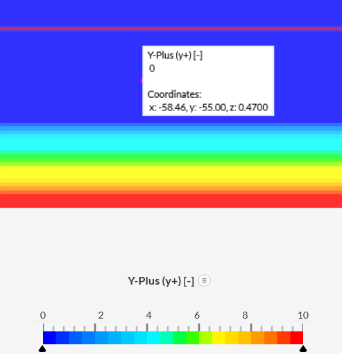 The colouring I don’t understand. It looks y+ is always zero (using Inspect Point), but the colouring is changing. See these two grabs: