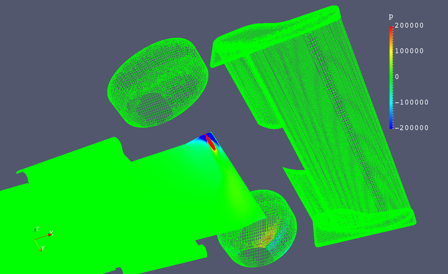 Lift and drag are very large numbers (see graph) and are positive values. I’m expecting negative numbers. I redid this simulation without rotating wheels and I got negative values for lift and drag however they were still obscenely large numbers in magnitude. I have double checked the origin of the rotating wheels and I am pretty sure they are correct. I post-processed in Paraview and the streamlines were nonsensical. The streamlines of the simulation without rotating wheels made sense and showed velocity/pressure contours as would be expected.