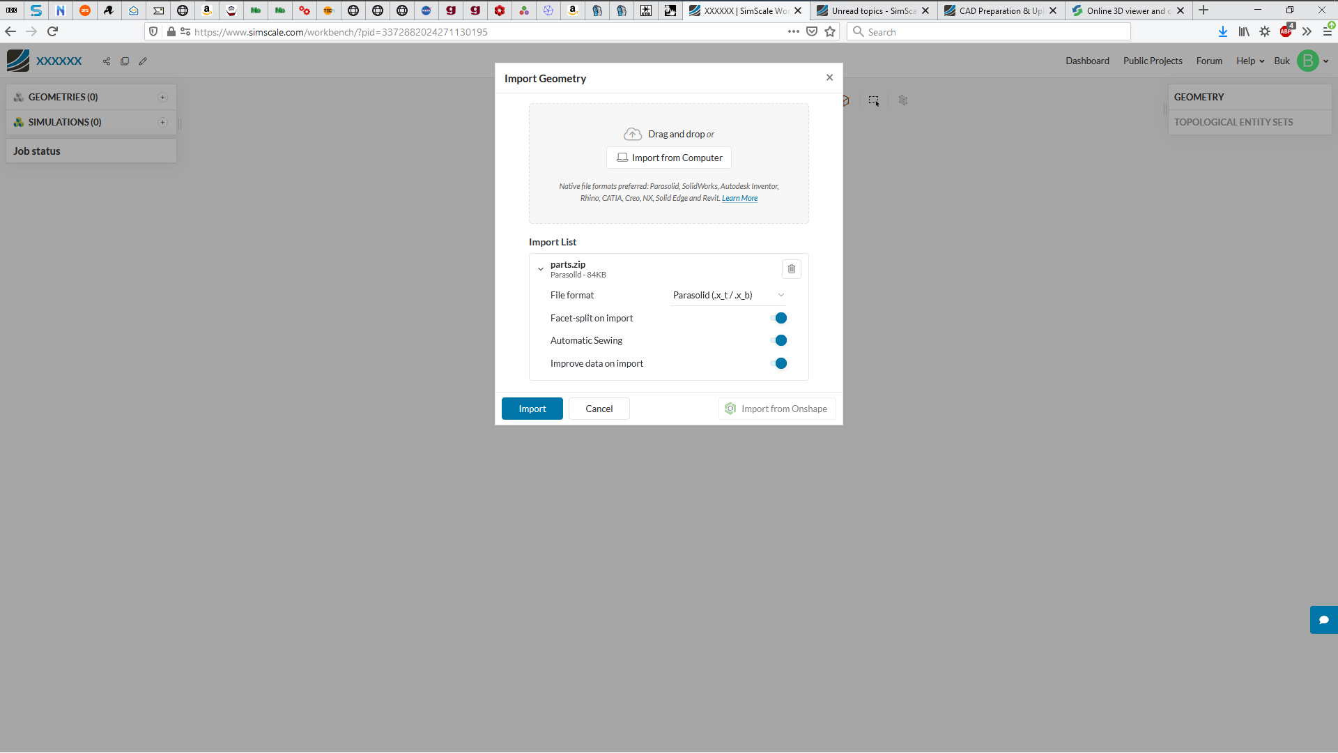 Once again, no complaints from uploading the .zip file (once I had identified the contents as .x_t), but once the upload completes, again only the first .x_t file within the zip file is seen/displayed in the project?