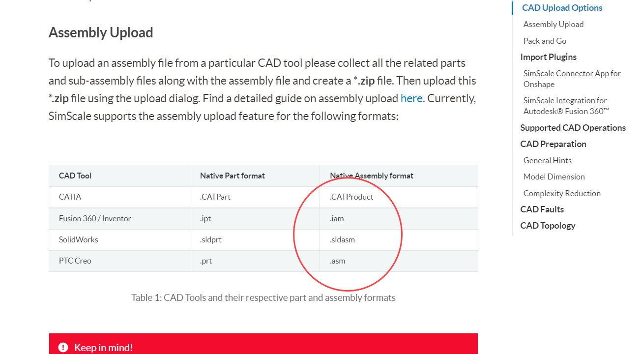 The [CAD Preparation & Upload | Simulation Setup | SimScale](https://documentation for uploading assemblies) suggests zipping them and identifying the filetype when uploading, there are no complaints, but SimScale only sees/displays the contents of the first .sab/.sat file within the .zip file.