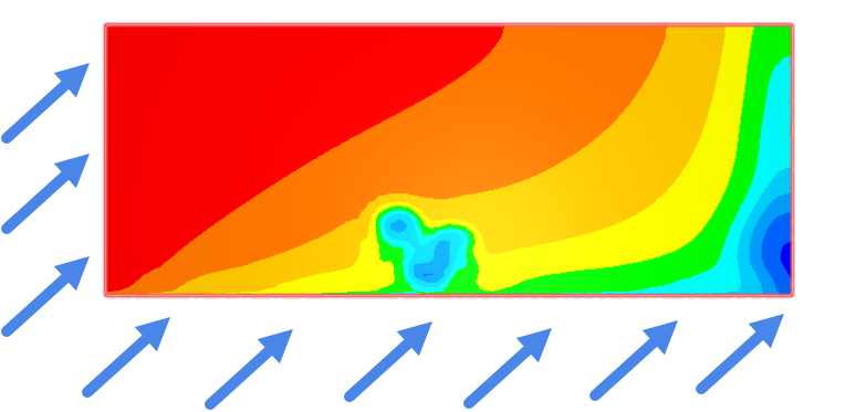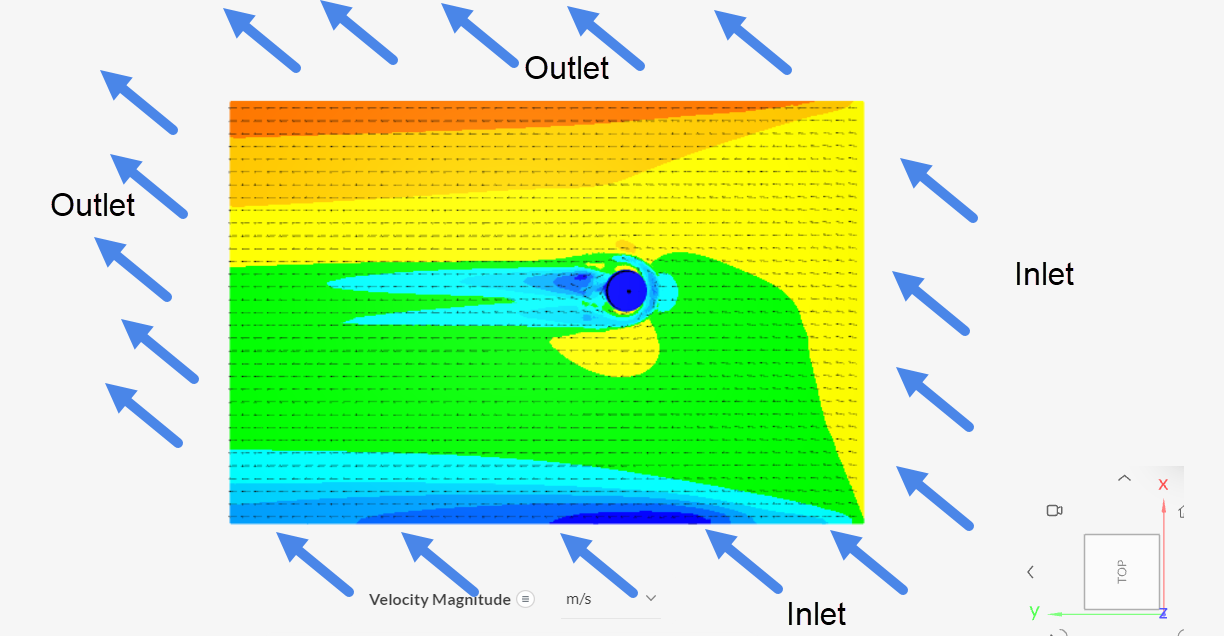 I want to use an air speed not perpendicular to the ‘Velocity inlet’ face (using the x and y velocities/etc. using the ABL method: Smoke Propagation From a Chimney | Tutorial | SimScale ). I have on the opposite side a ‘Pressure outlet’. The remaining faces of my Flow region are: vertical and ceiling and ‘Wall/slip’, the ground is ‘Wall/non-slip’.