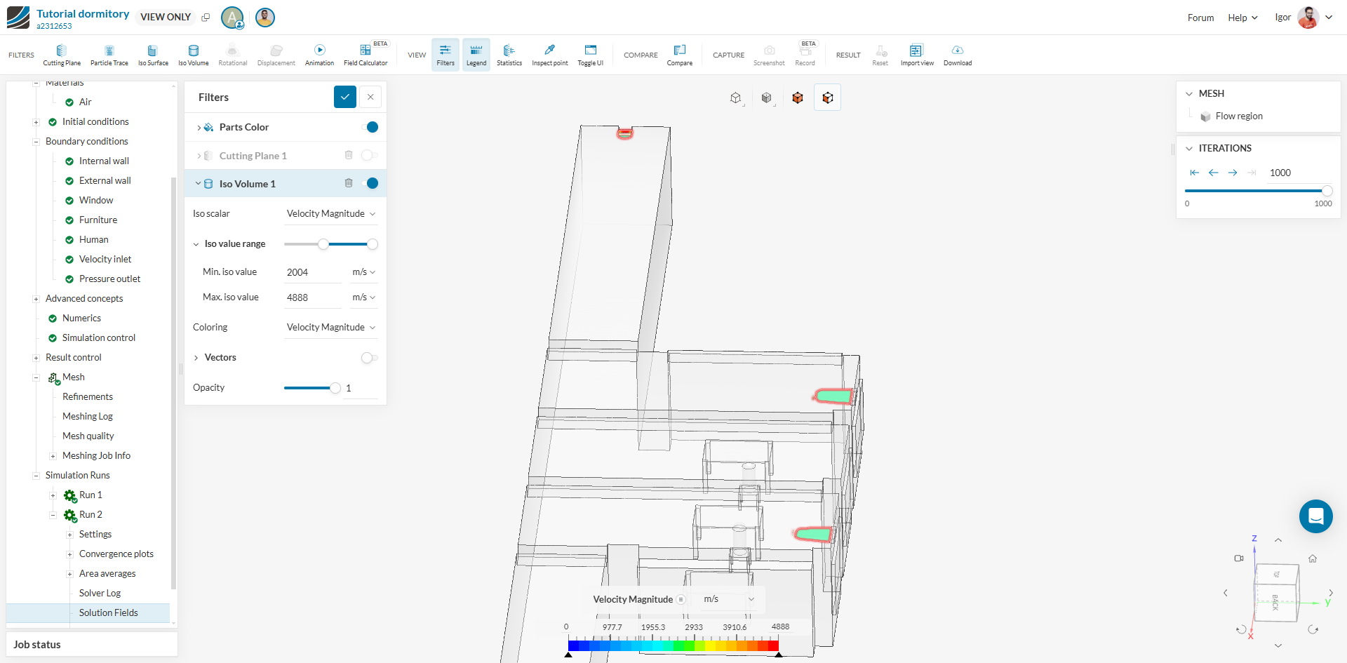 I tried to follow the tutorial [Meeting Room Thermal Comfort Analysis] using my model but the velocity is looking too high like hundreds and thousands of m/s. How should i solve this problem?