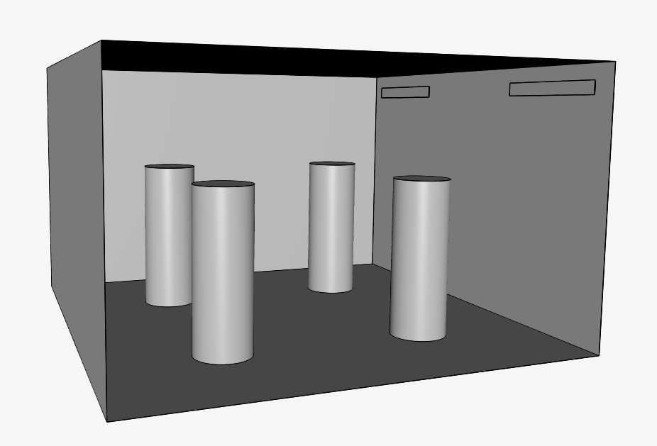 the two square plates by the wall are the push pull system, when one blows in sucks the other out: