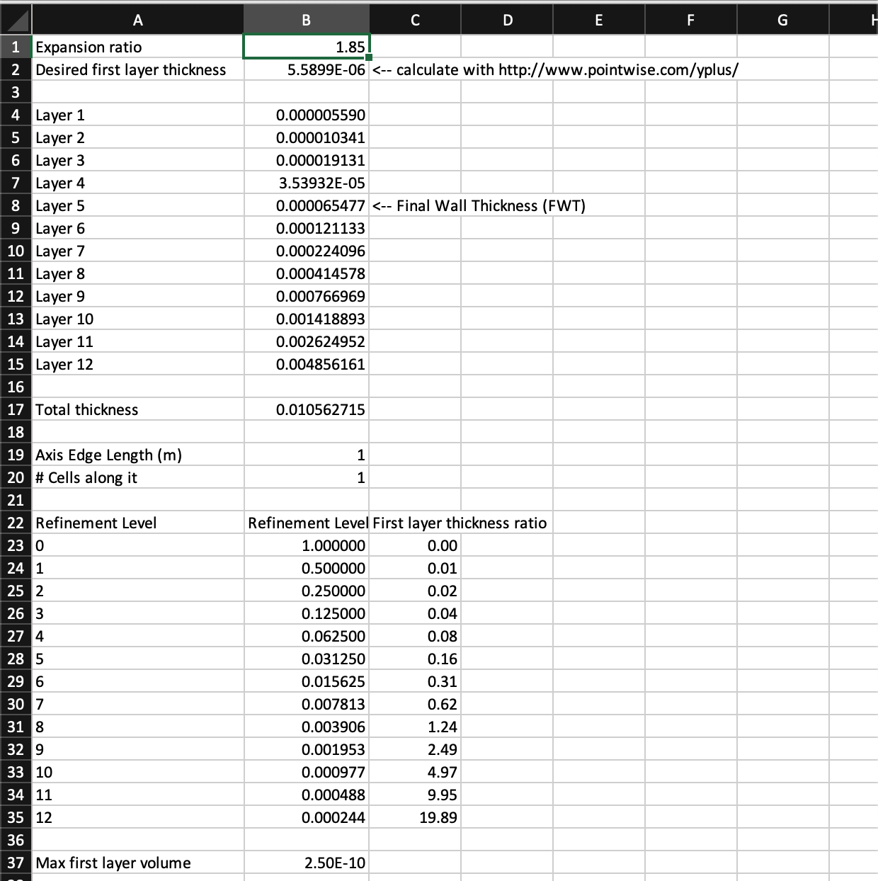 I am a little confused, when I ‘run the numbers’ for Y+=1 I get this: