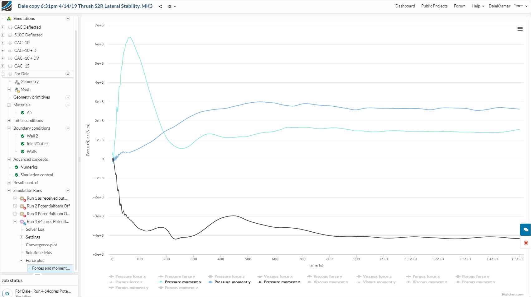 So with respect to goal 1, I think I can even use a wall-function simulation to test this as long as I ignore pitch and roll results. From the Dale’s monster run on my 25MM node mesh, I’m seeing what I saw in pretty much every other solution: y moment converging about 2800 N-m , y and z moments all over the place (sim to sim). This is at least a clumsy version of a mesh invariant result, so it seems it can be trusted.