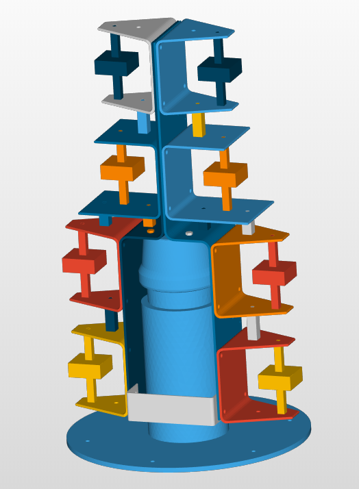 I will share some results with you. Well, first of all, I will describe my case with more detail. My system is shown in the picture below, a stack of marine loudspeakers (represented by the weird “boxes” that represent their weight).
