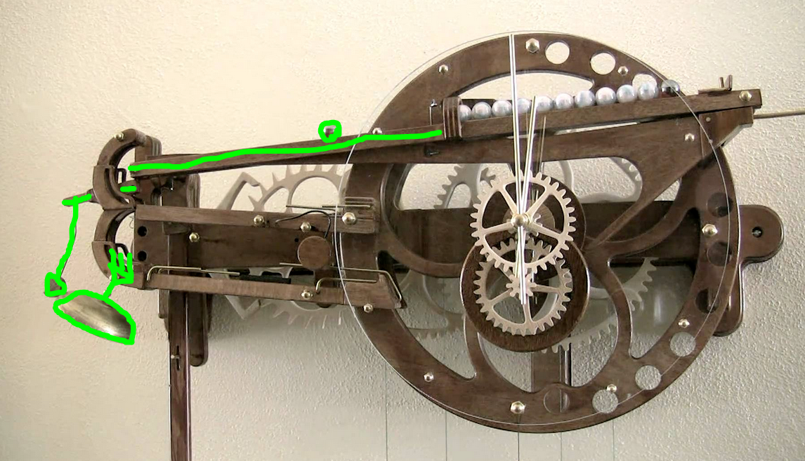 The ball on the slope is accelerated by the gravity which then falls on the lever which then hits the bell.