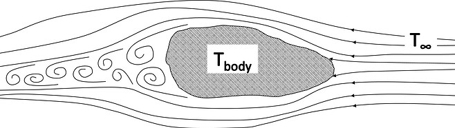 Consider a convective cooling situation. Cold gas flows past a warm body as shown in the figure below.
