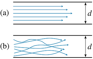 Figure 1: (a) Laminar flow in a closed pipe, (b) Turbulent flow in a closed pipe