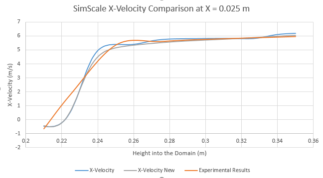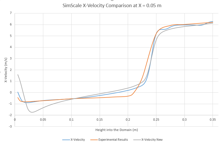 Hi Guys just thought I would quickly share my findings roughly. Using the different K values definitely Made a significant impact. The graphs are velocity profiles at different x positions, he first two are from the top of the building to the top of the domain and the last is from the floor to the top of the domain just behind the building.