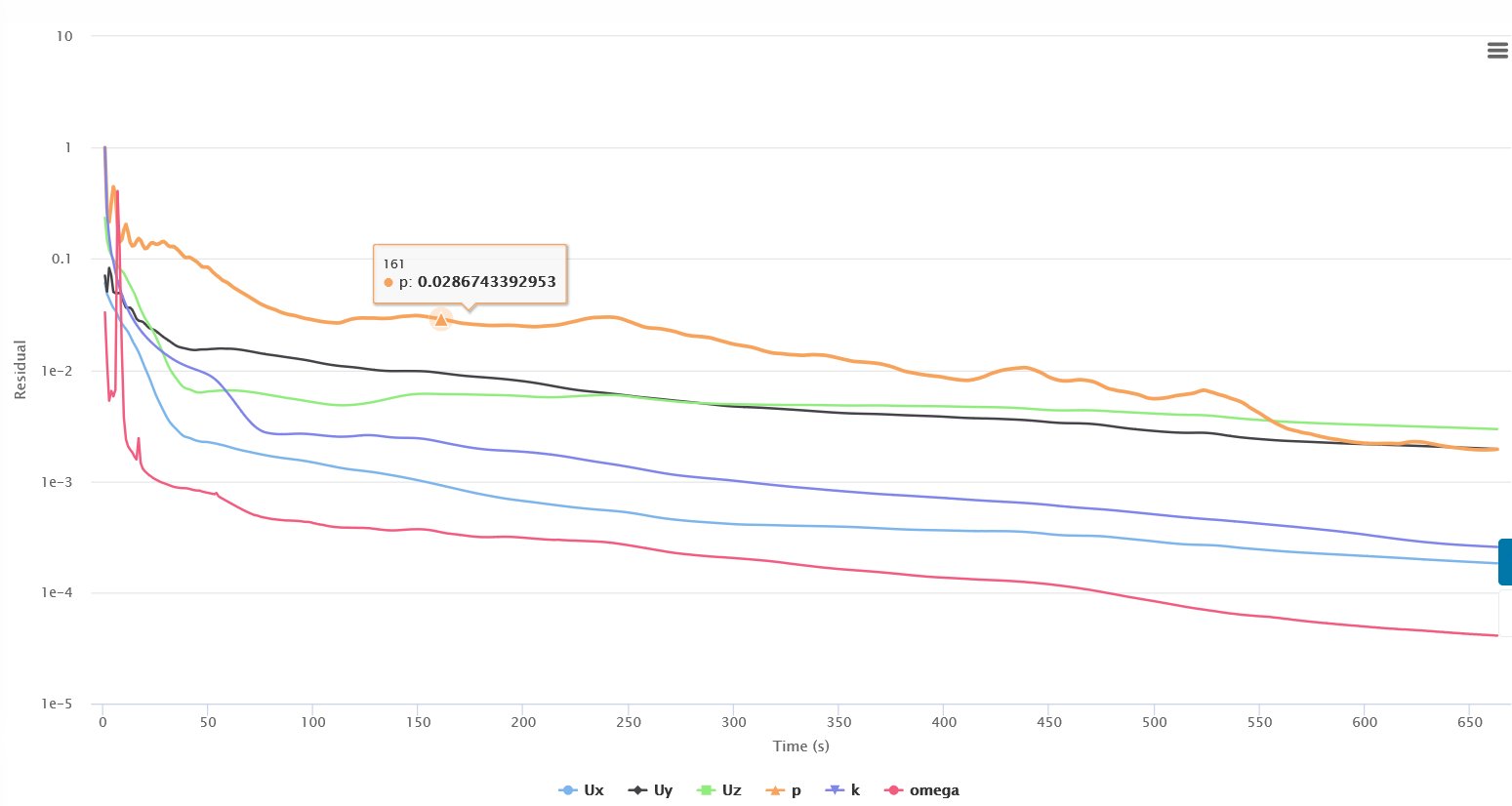 So far from the online results everything looks great! I will need to see locally on paraview to see its exact performance compared to experimental data I need to make some velocity plots. So once its run through Ill download the case as it currently doesnt let me download.