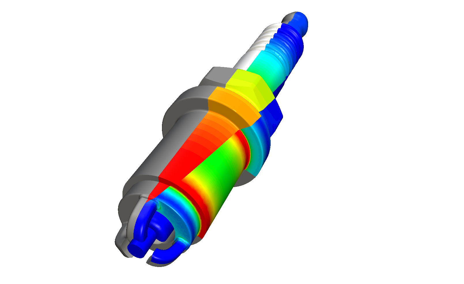 Fig.2: Thermomechanical analysis of a spark plug showing the temperature in stresses inside spark plug at high temperature.