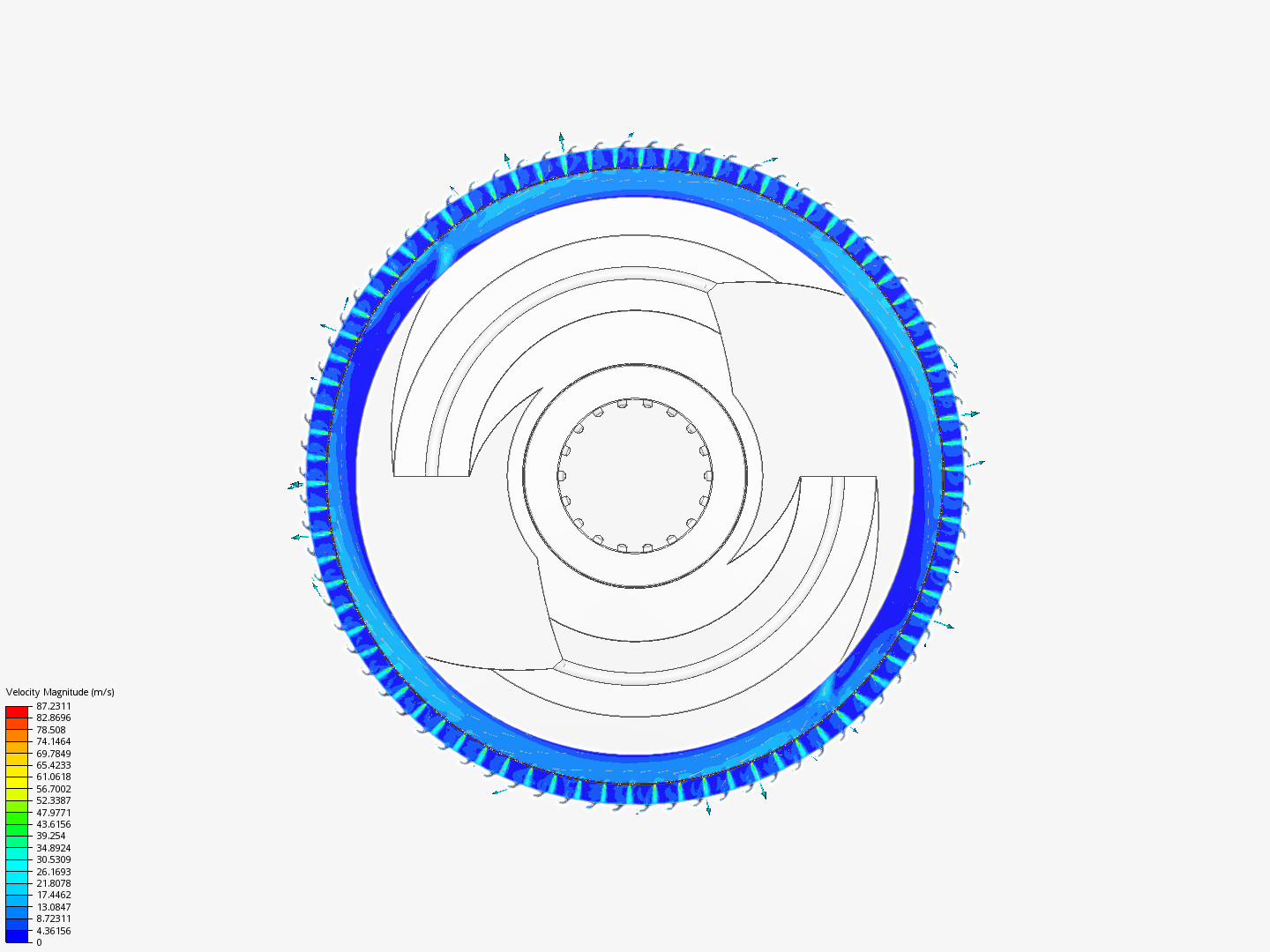 I’m trying to rotate air blades inside of shell (torus shape). But simulation get me only rotating in XY axis, there are no vertical (Z-axis) air movement at all.