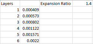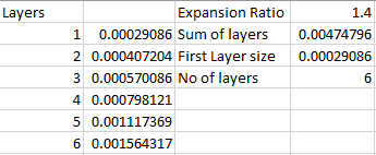 If I have 6 inflate boundary layers and an expansion ratio of 1.4, this gives me the following final layer thickness: