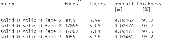 From your input value of 0.0022, I’ve re-calculated backwards the size of the first layer and you can see below that the first cell size does correspond with the actual layer size that I’ve measured in ParaView.