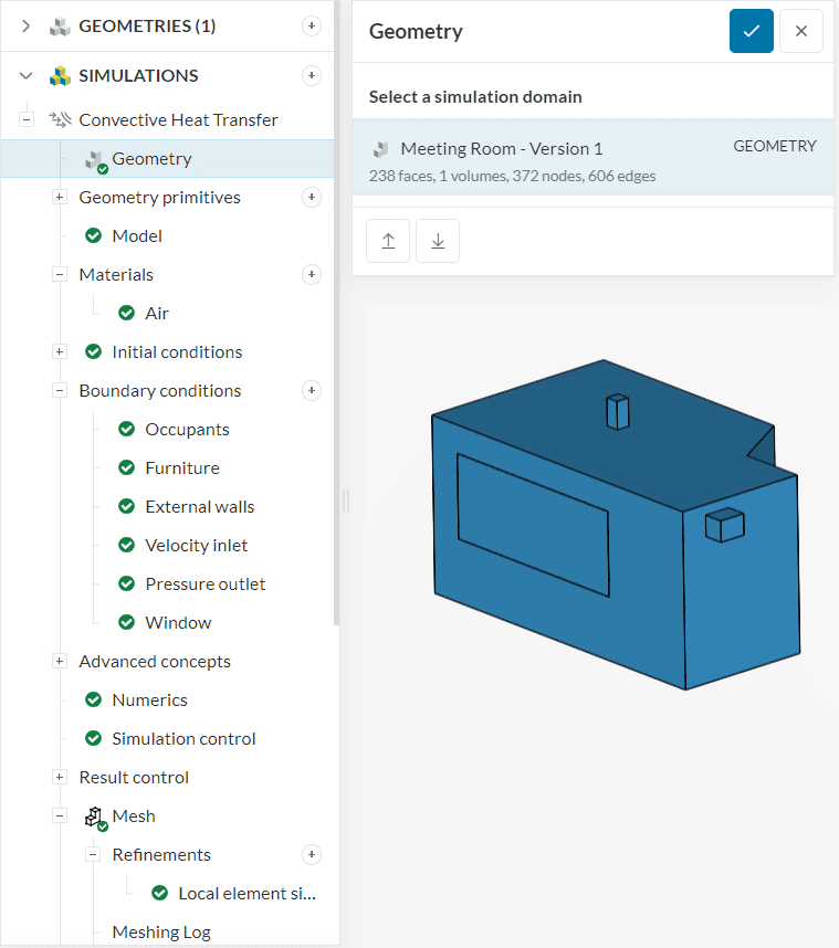 To showcase the CAD associativity capabilities, the geometry from the Thermal Comfort in a Meeting Room tutorial will be used.
