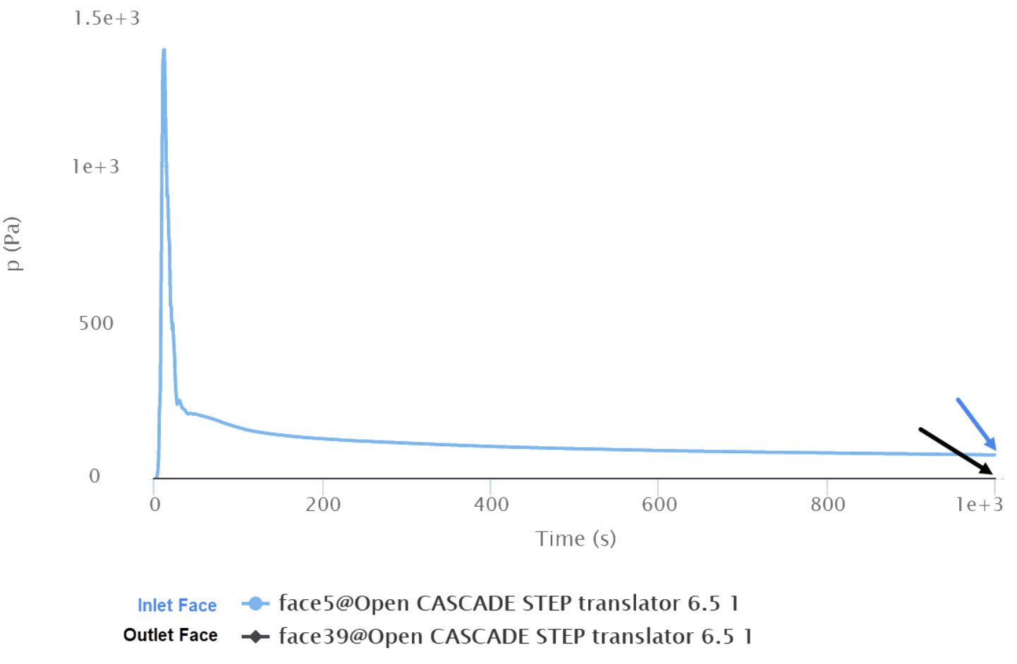 By calculating the difference between the two pressure values of the last iteration, we get the pressure drop of the model.