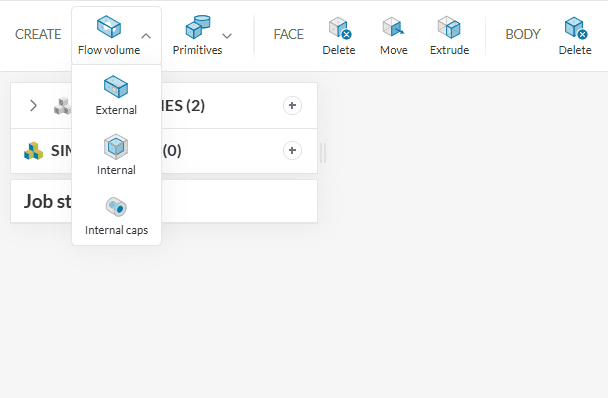 - After entering the CAD editing tool, select an ‘External‘ flow volume operation