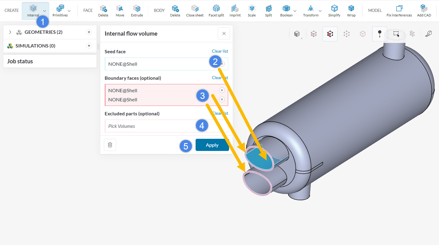 Note that the definition of boundary faces is optional for internal flow volume operations. This is because some CAD models do not have any openings, leading to no boundary faces.