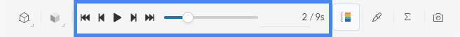 When the simulation run is complete, we can go to the online post-processor, where we can navigate through the load cases using the frame (time) selection toolbox at the top:
