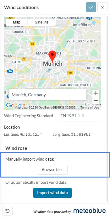 - Click on ‘Browse files‘ to chose the file containing the wind data.