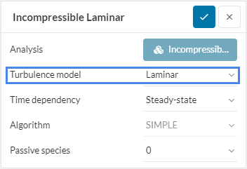 For a laminar flow, it’s suggested to use the \(Laminar\) turbulence model, whereas, for a turbulent model, it’s suggested to use the \( k-\omega \:SST\) turbulence model.