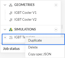 In this example, we will duplicate the template simulation within the same project. Another option would be to copy the entire project. This would ensure keeping a clean backup of the simulation template.
