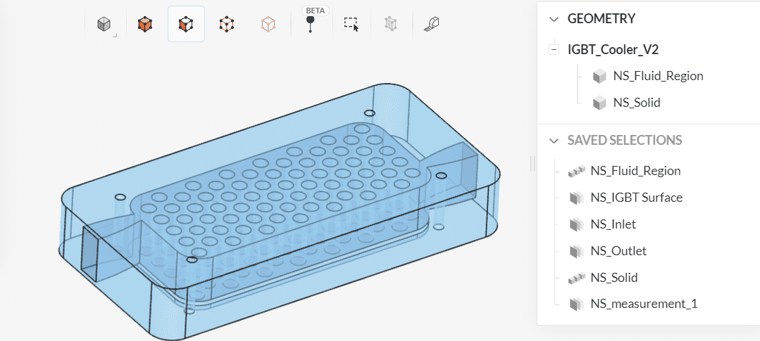 As the template is now set up, the new design of the IGBT cooler is uploaded. For the new design, the same tags have been set. The Figure below shows the new design with the saved selections created.