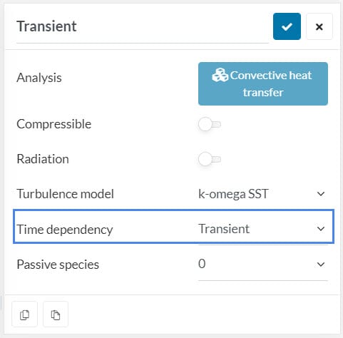 - Transient simulations are computationally expensive. First, ask yourself whether your problem requires a time-dependent analysis or not. As an example, if you would like to see the maximum or minimum temperature the system will reach under stable conditions, choose steady-state. If you precisely need to see the conditions within a specific time limit, then select Transient time dependency.