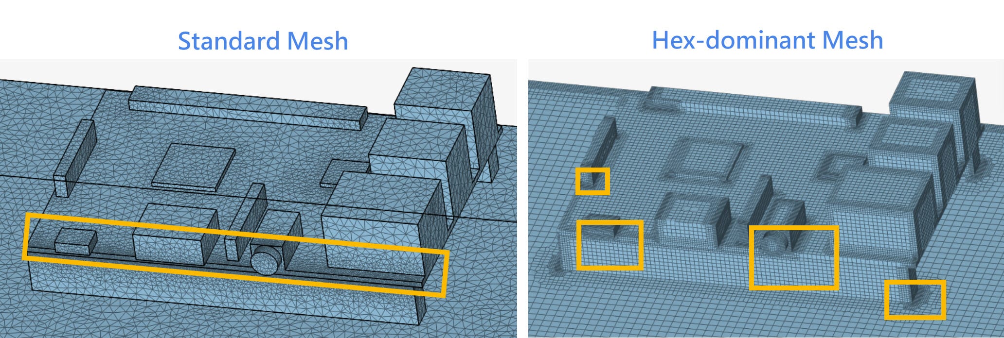 Although we recommend using the Standard mesher for most of the applications, it is not the best choice here. Standard mesher generates fine cells to capture the CAD details. We don’t have control over the smallest cell size! Similarly, the Hex-dominant mesher generates fine cells to capture the features properly. Therefore, automatic meshers are not recommended.