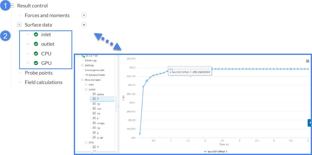 Always add result control items, because you can track the quantitative data with respect to time and download it as a .csv file. The graph below shows the outlet temperature of the transient convective heat transfer simulation with respect to time.