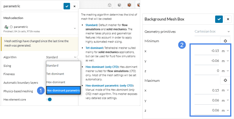 - Use Hex-dominant Parametric mesh algorithm.