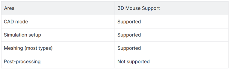 The 3D mouse is supported in the SimScale workbench for most workflows. This includes CAD mode, mesh generation, & simulation setup. Please Note: Post-processing is not yet supported.