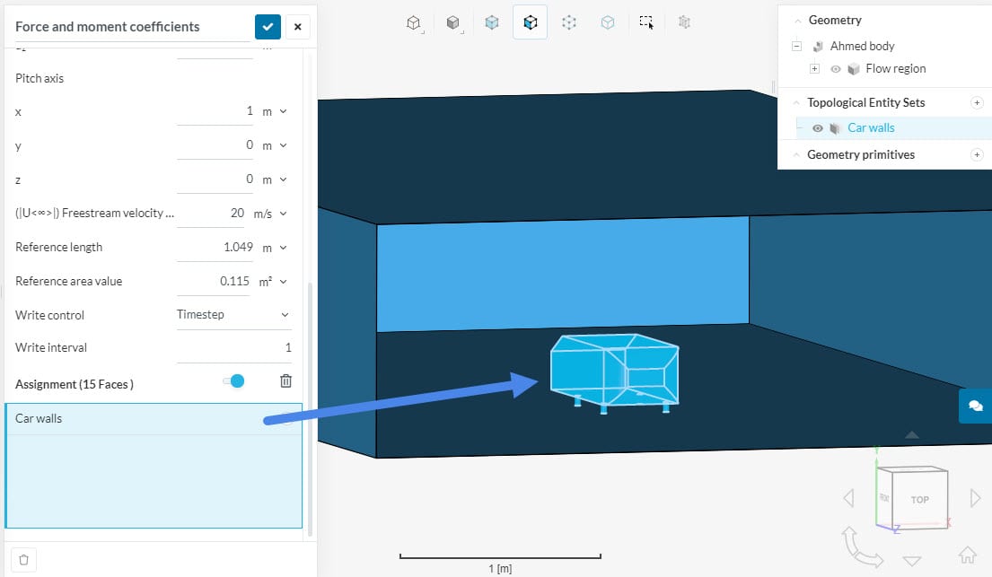 Make sure to assign only the faces of interest in the result control. Still using the Ahmed body geometry as an example, only the car walls should be selected