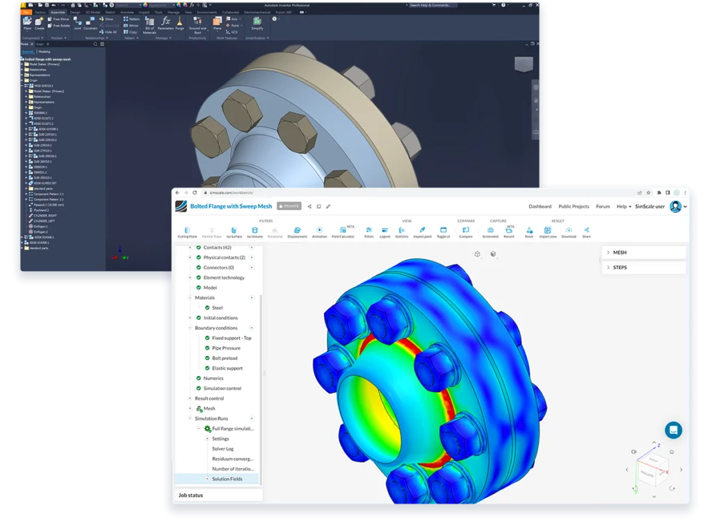 You can import native Inventor CAD parts and assemblies directly in SimScale while continuing to design on your local computer.