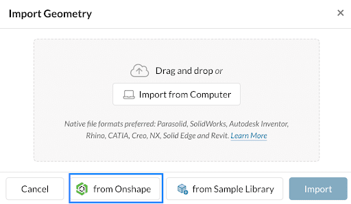 Move your file from Onshape to SimScale via the Onshape import button. No download is needed.