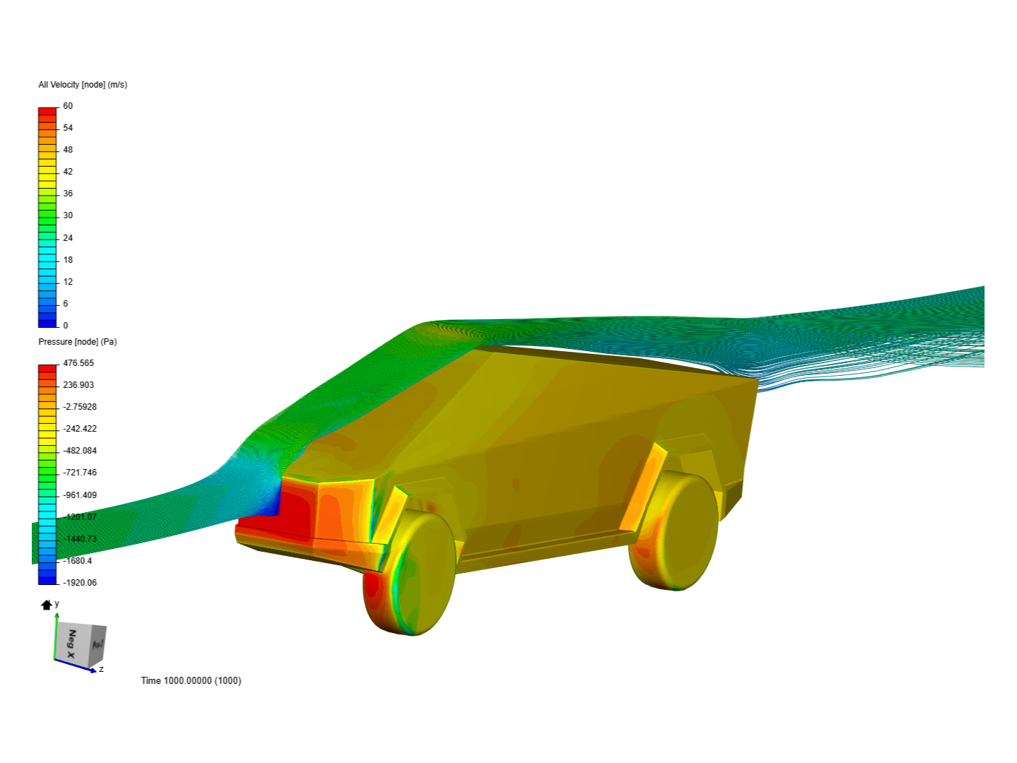 CFD Analysis of Tesla Cybertruck. Cd (Coefficient of drag) 0.387