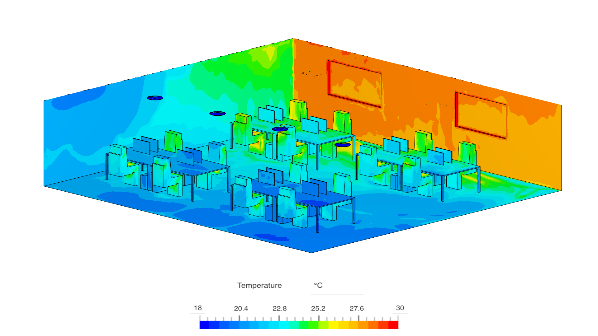 Investigating how further improvements to thermal comfort and air quality/age of an office space design (optimized based on past experience) can be made using SimScale's CFD platform.